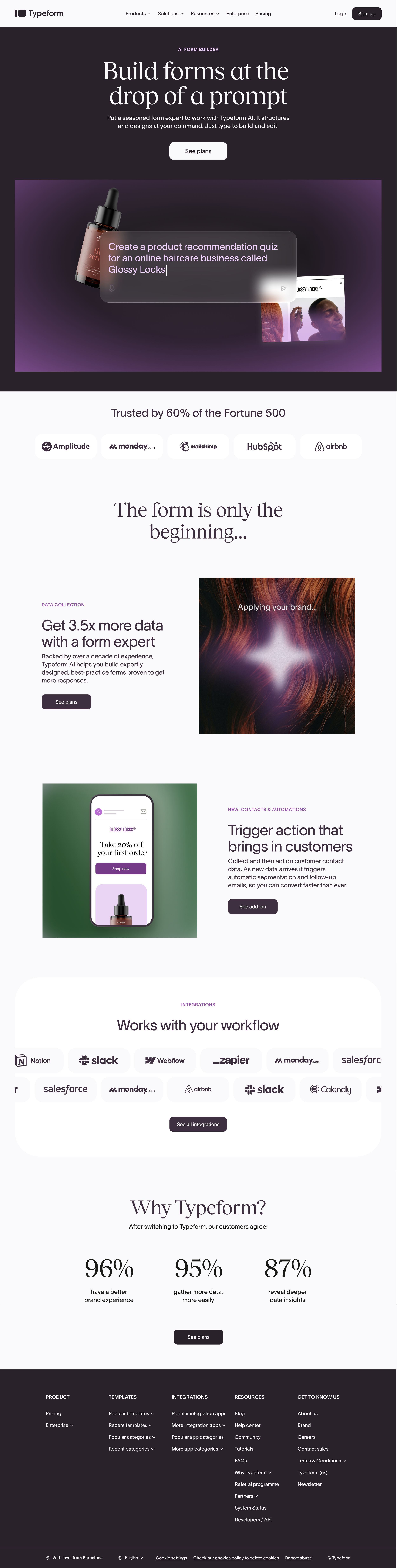 Then, the copy leans into Typeform’s reputation, personifying our AI form builder as, “A seasoned form expert” that works for the user. Typeform is offering a solution to the complexities of data collection and automation, promising they will feel empowered to do more.